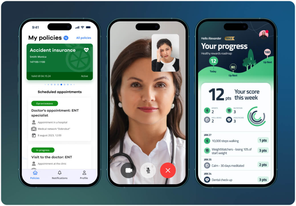 Mobile apps provide policyholders access to their accounts and insurance services. Modern applications offer a wide range of convenient features: electronic insurance cards, push notifications for renewals, claims, and payments, live support, and claim filing with the ability to send supporting photos or videos.