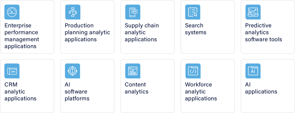 We offer a few core AI services for fintech, including developing enterprise performance management, production planning analytics, workforce analytics, CRM analytics, supply chain analytics, advanced predictive analytics tools, and AI software platforms. AI for banking is among the hottest trends right now. Modern digital financial teams utilize AI-based tools to provide better services, attract more clients, and increase revenue. They help optimize data aggregation and usage, mitigate regulatory and market risks, improve customer experience, and combat many banking problems, including fraud.